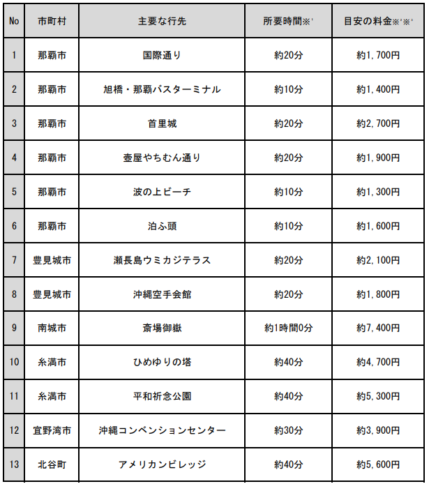 ダウンロードはこちら ⇒ 那覇空港から近隣の観光地等へのタクシー(小型)料金目安表