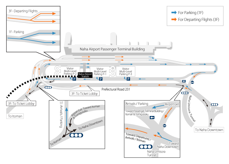 Route guidance of Naha Airport in the road