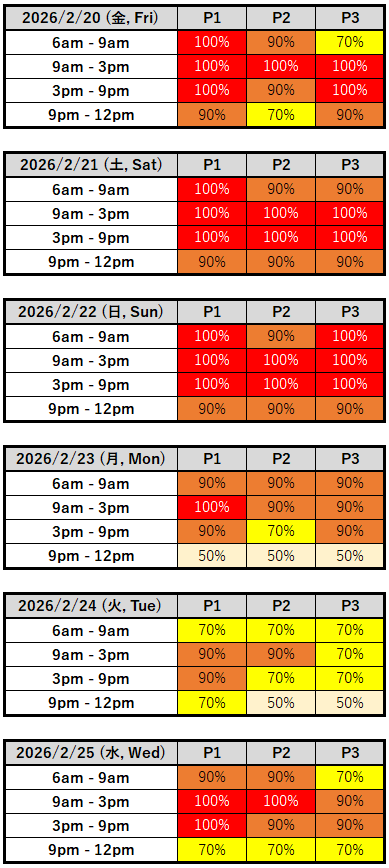 Below is Naha Airport parking congestion prediction for the next 6 days. Please refer to it as an estimate. It may be subject to change depending on the situation.