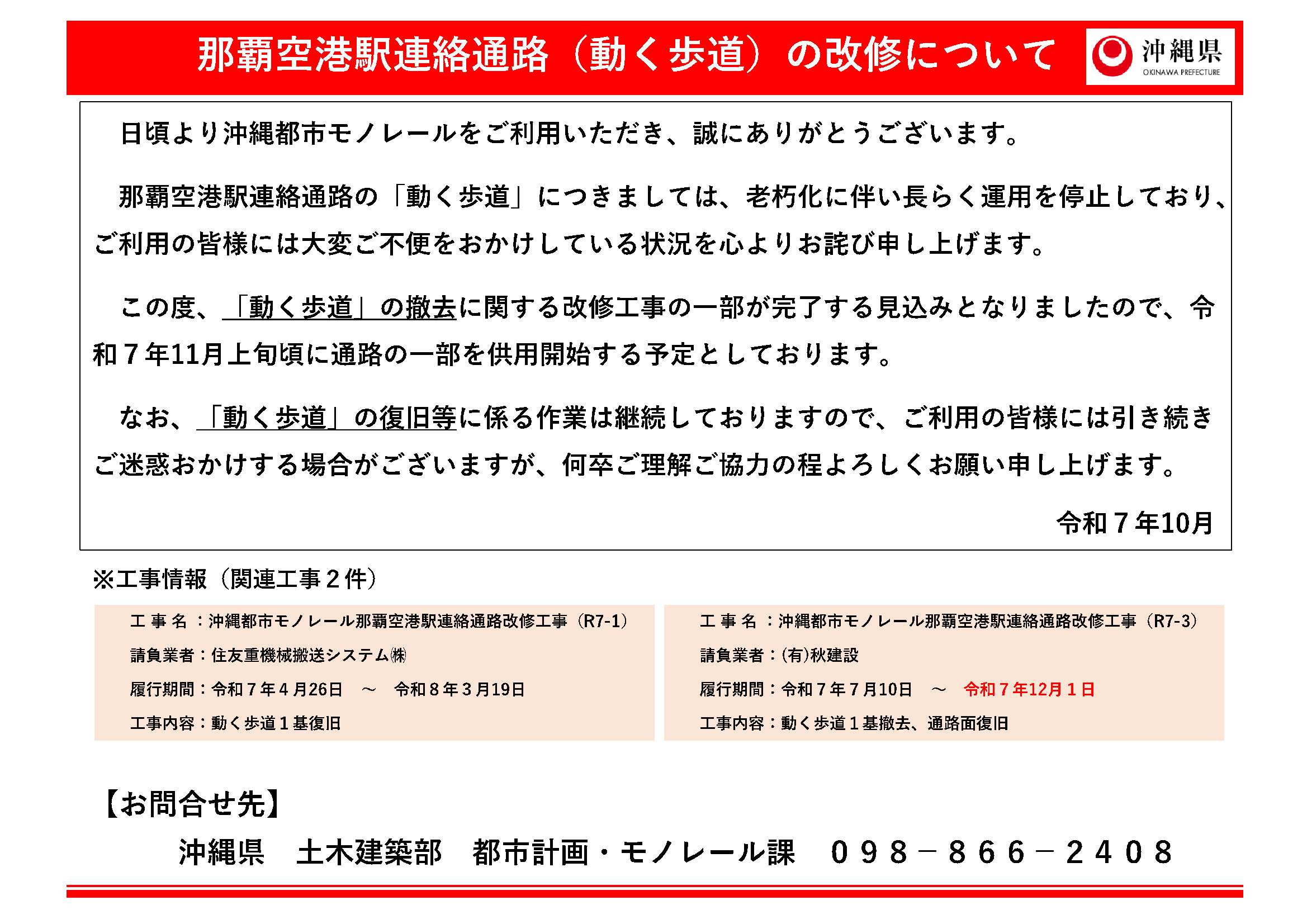 【沖縄都市モノレールからのお知らせ】ゆいレール那覇空港駅連絡通路(動く歩道)の改修について