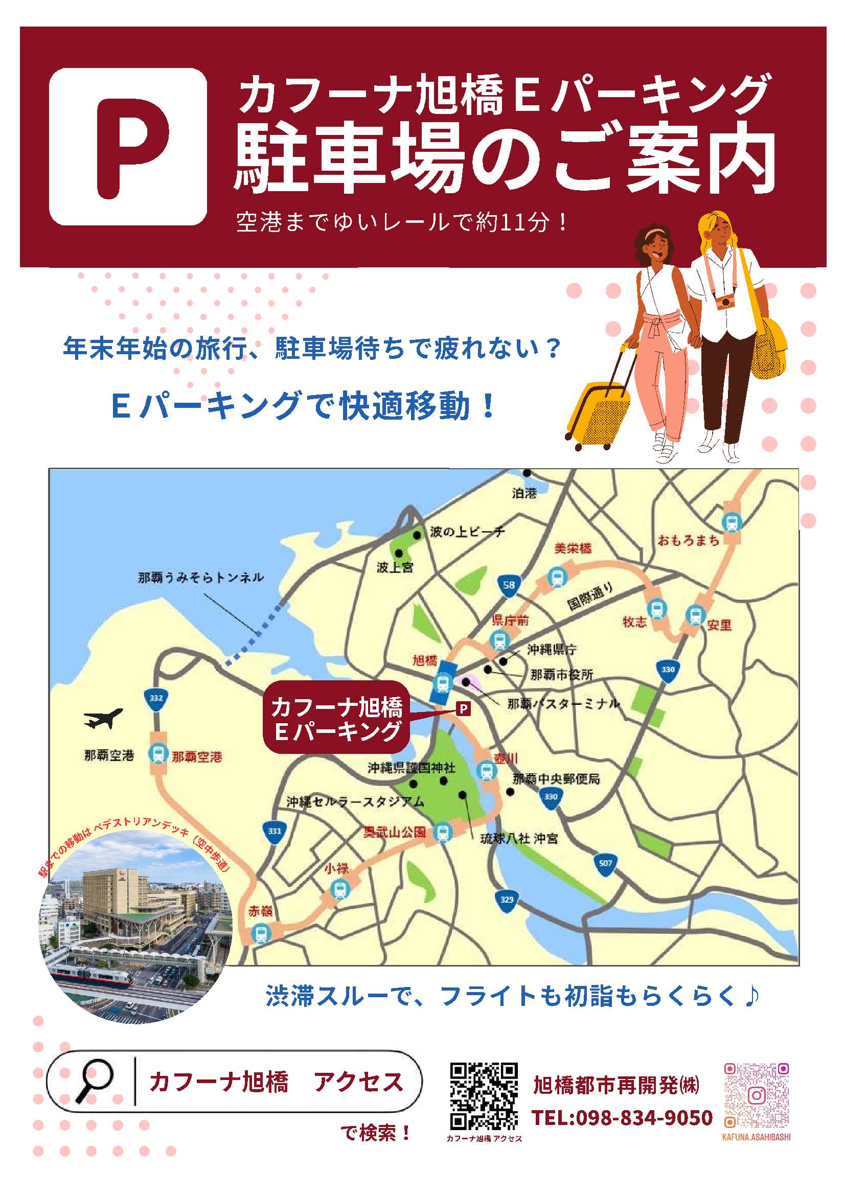 ※平日の8:00~17:00は混雑しております。 詳しくはカフーナ旭橋公式サイト(「E街区 カフーナ旭橋Eパーキング」の欄)をご参照ください。 https://www.kafuna.jp/access.php