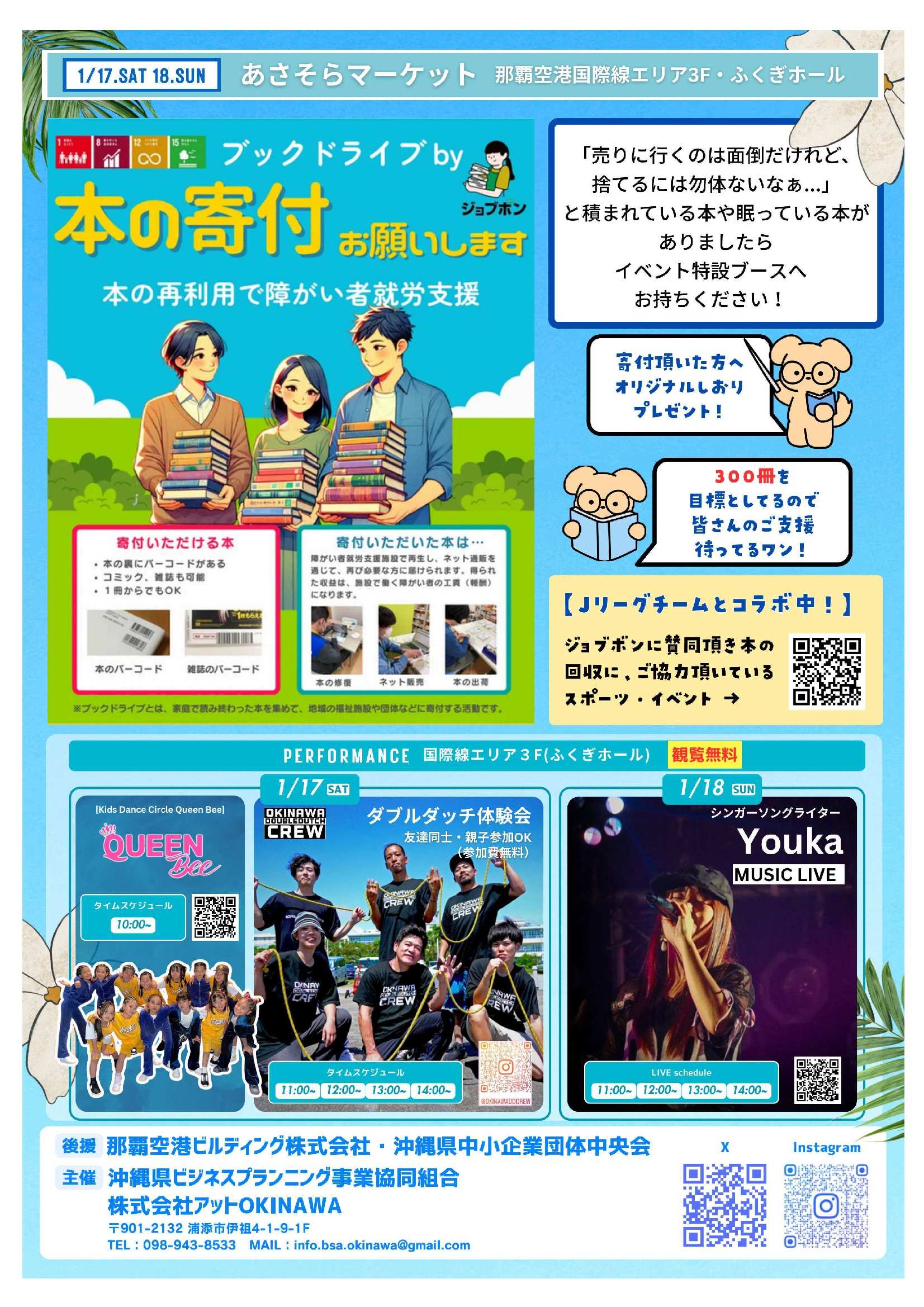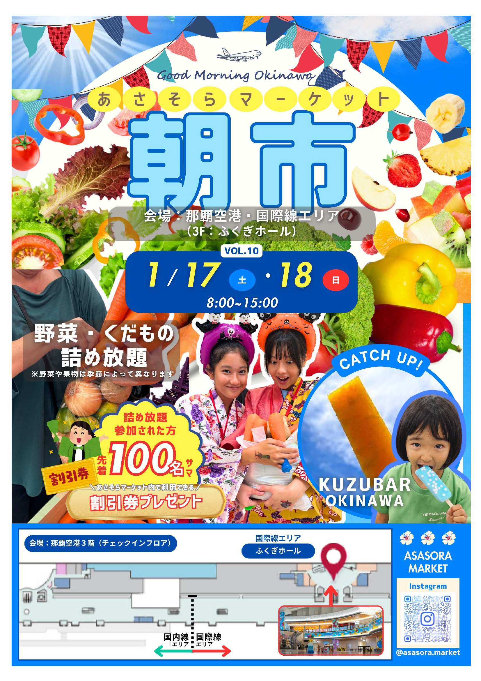1/17(土)・18(日)、那覇空港 国際線エリア3階 ふくぎホールにて「あさそらマーケット」を開催いたします。